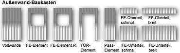 Außenwand: WSVO/EnEv Außen Stahlblech, innen Holzwerkstoffe: Die Außenwand nach Kundenspezifikation, bis 1,20 m Breite, bis 3 m Höhe. Integrierter Wärmeschutz gemäß Wärmeschutz-Verordnung '95: k <= 0,5 W/m2K