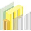 Wählen Sie die Oberflächen entsprechend Ihren Anforderungen. Die Außenfläche beispielsweise glatt oder liniert, in Sickenhöhen bis 3 mm. Die Innenfläche als Dekorspanplatte in verschiedenen Ausführungen, oder alternativ z.B. in Gipsfaser- oder Holzzement-Ausführung.